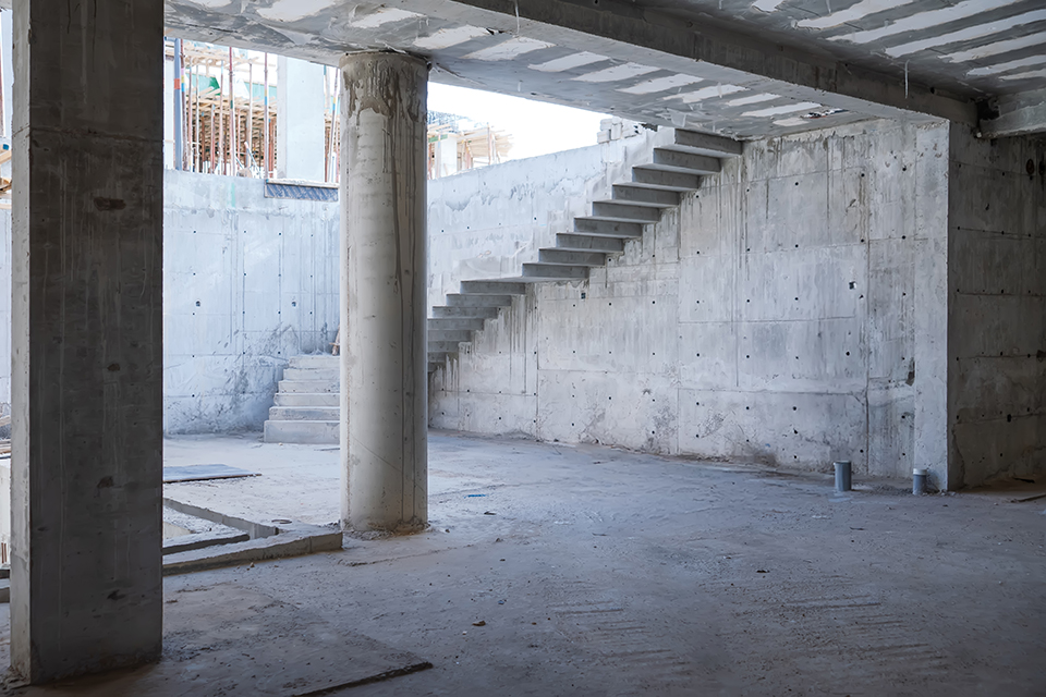 تمثل هذه المرحلة الأساس في عملية البناء، وتشمل أعمال الحفر، وصب القواعد الخرسانية، وبناء الأعمدة والأسقف.